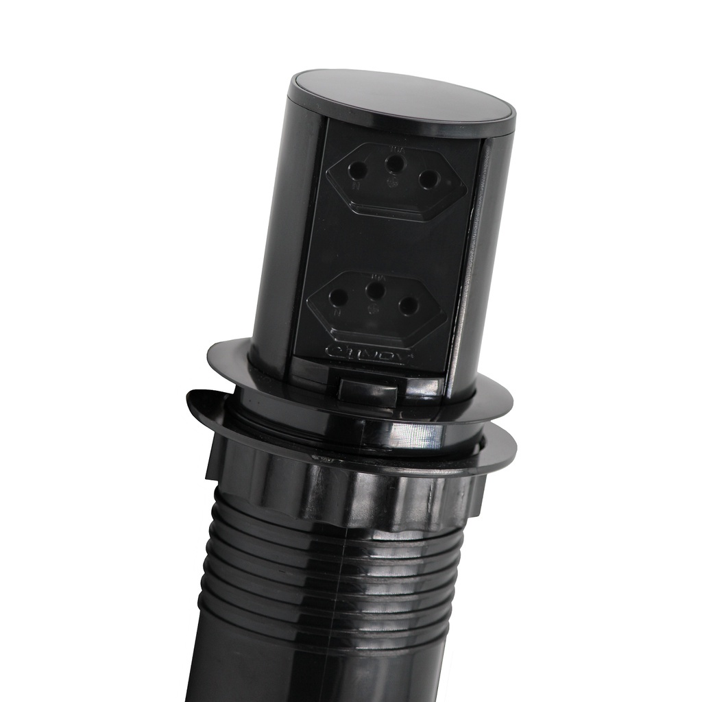 Mini Torre Tomada Embutir Bancada Extensao - Cozinha - Mesa Movel 2 Tomada Elétrica 20a Extensão Totem Preto Preta Branco Branca Cinza Marrom