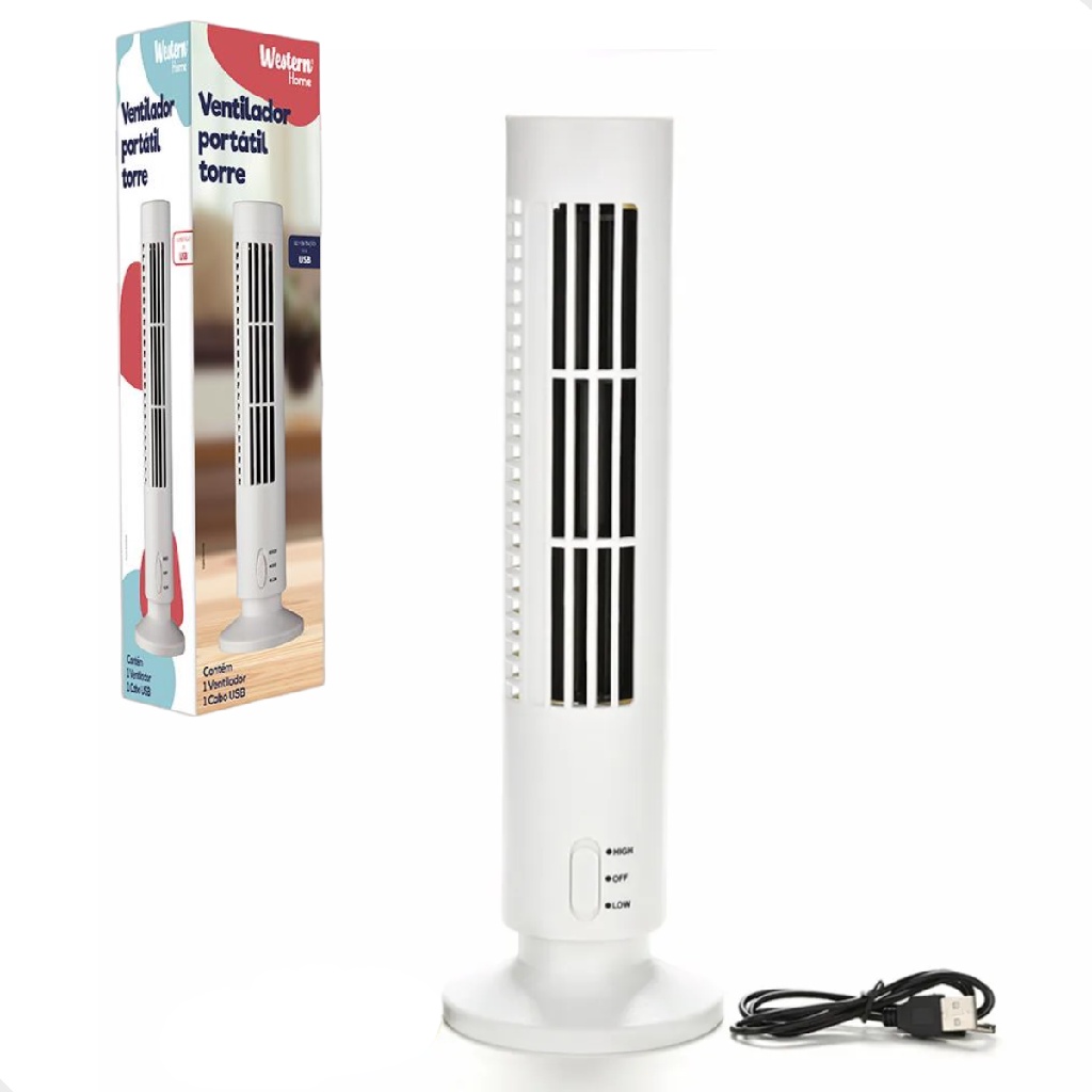 VENTILADOR MESA PORTÁTIL USB TORRE CIRCULADOR VERTICAL 2 VELOCIDADES COMPACTO MINI MULTIUSO BIVOLT