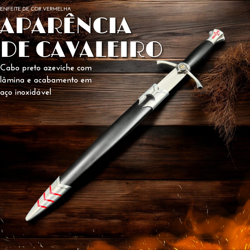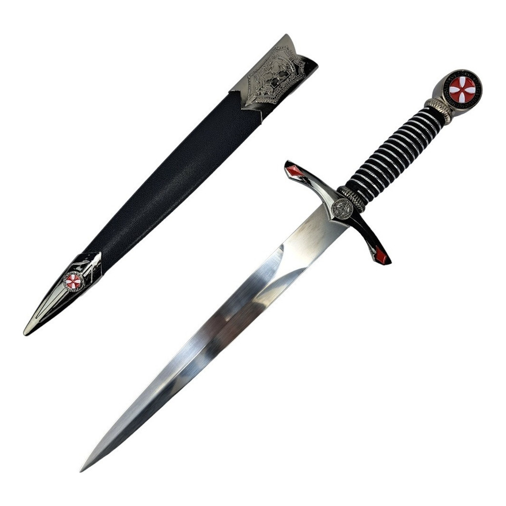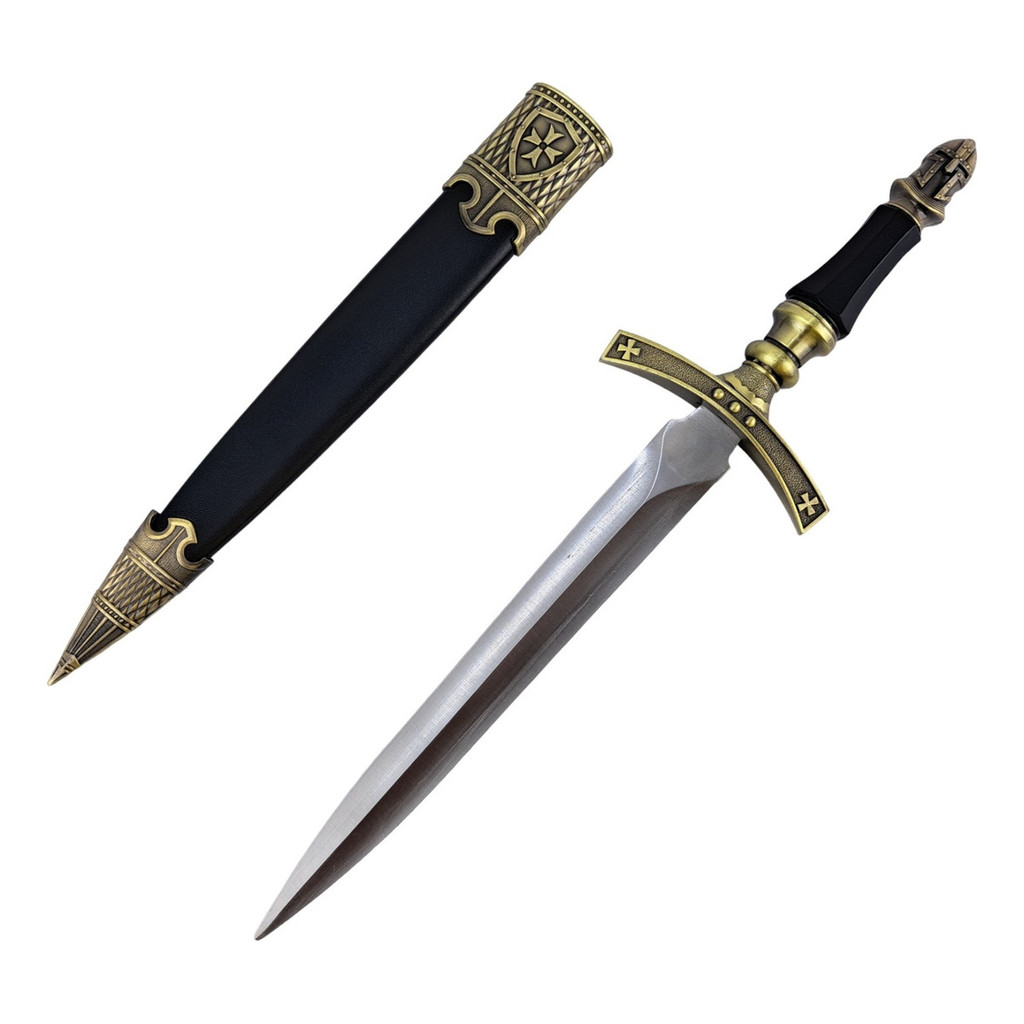Adaga Medieval Cruz De Malta Preto Com Bainha Haste em Aço Ornamento Decorativo Brinquedo Cosplay Coleção