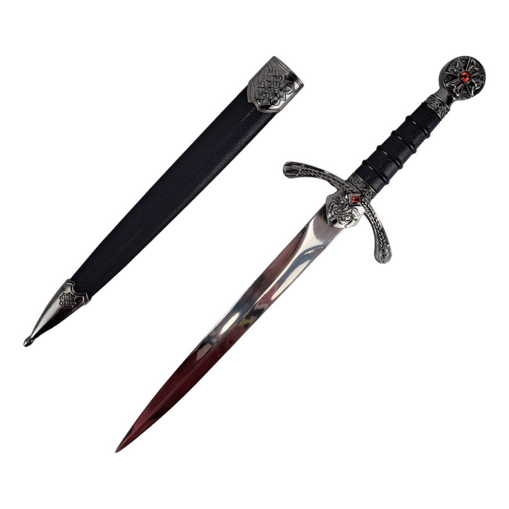 Adaga Medieval Decorativa Cavaleiro Bainha Revestida Couro Haste em Aço Ornamento Decorativo Brinquedo Cosplay Coleção