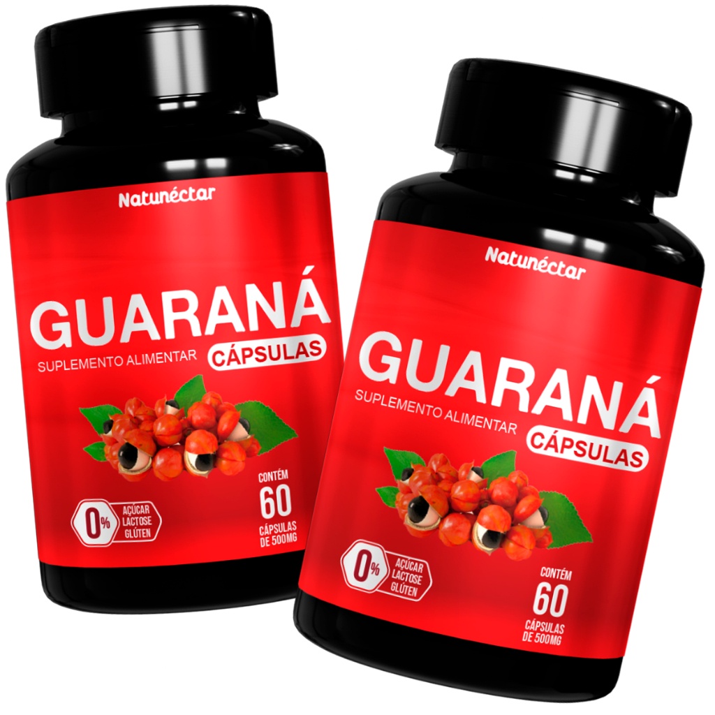 Kit 2 Frascos Guaraná Cafeína Energia 100% Suplemento Alimentar Natural Vitamina Pura - Natunectar 120 Capsulas