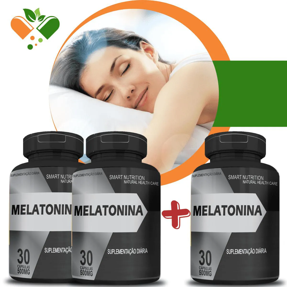 COMPRE 2 LEVE 3 POTES MELATONINA 100% NATURAL C/30 CáPSULAS DE 500MG CADA - POTE PRETO