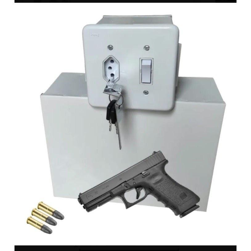 Cofre de Embutir Médio Tomada Com Gaveta E Fundo Falso