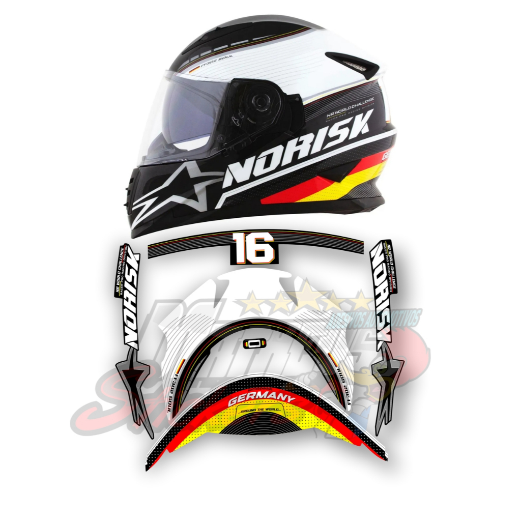 Kit Adesivos Emblemas Capacete Norisk Ff302 Grand Prix Germany Laminado Não Desbota