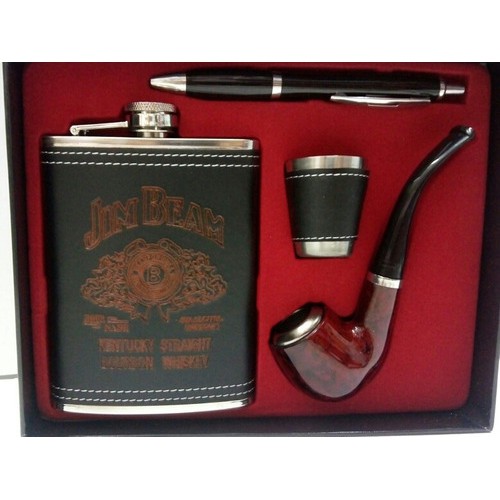 Cantil Porta Bebidas Jim Beam Whisky Conhaque Kit 4 Peça