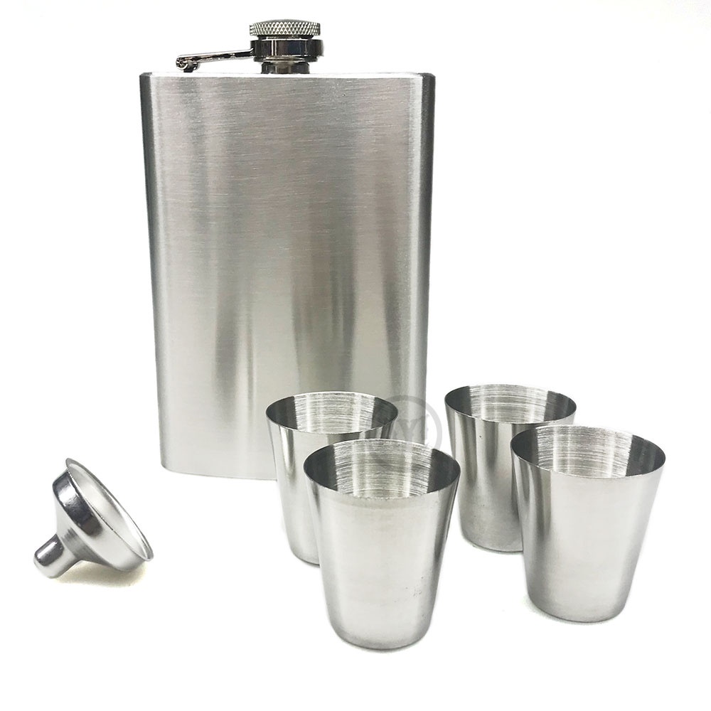 Kit Cantil de Bolso Whisky 6 peças Aço Inox na Caixa de Presente (Cantil 220ml - Funil - 4 copos)