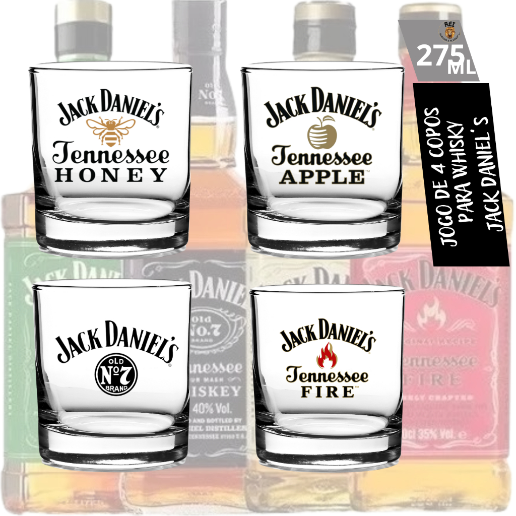 Kit Copos Whisky Jack Daniel's Vidro 265 Ml - 4 Unidades Luxo