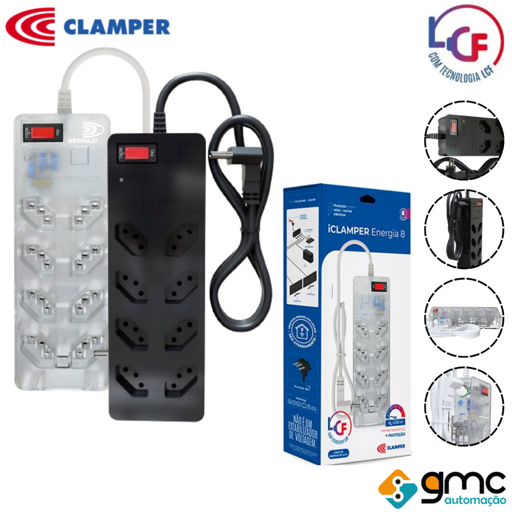 Filtro de Linha Protetor DPS Clamper 8 Tomadas iClamper Energia 8 Bivolt contra Raios e Surtos