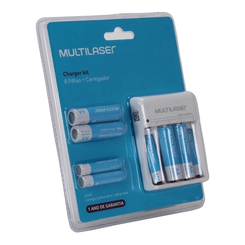Kit 8 Pilhas Recarregáveis AA e AAA + Carregador de Pilhas Multilaser Original