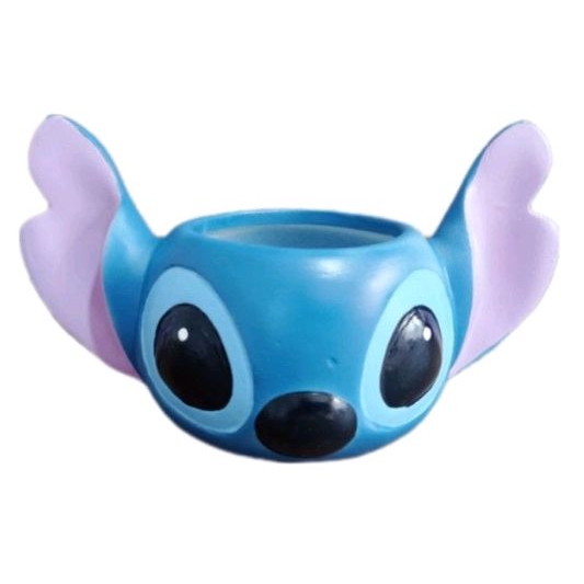 Lindo Vaso Cachepot em cerâmica Brilhosa pintado formato Stitch Disney para planta suculenta