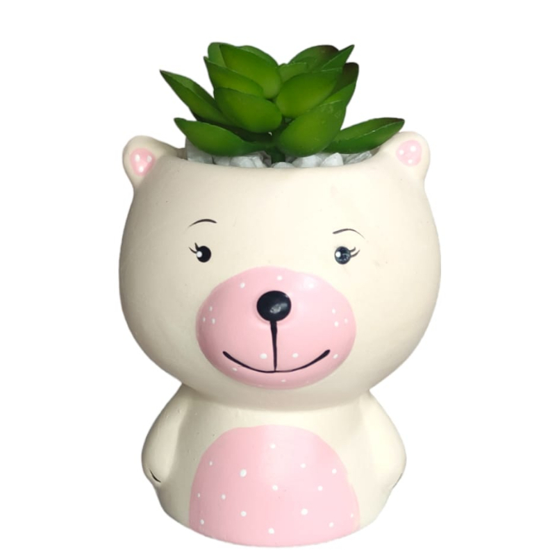 Vaso Vasinho Para Suculenta Urso Bebe Rosa Em Ceramica