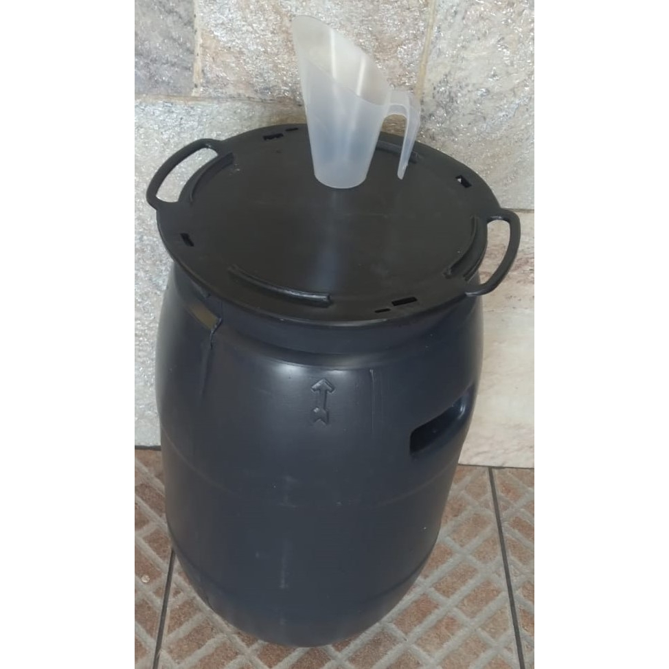 Porta-Ração/Canister/Container com Dosador - bombona usada de 30 litros ou 12 Kg de ração - Alta Resistência - produto sustentável