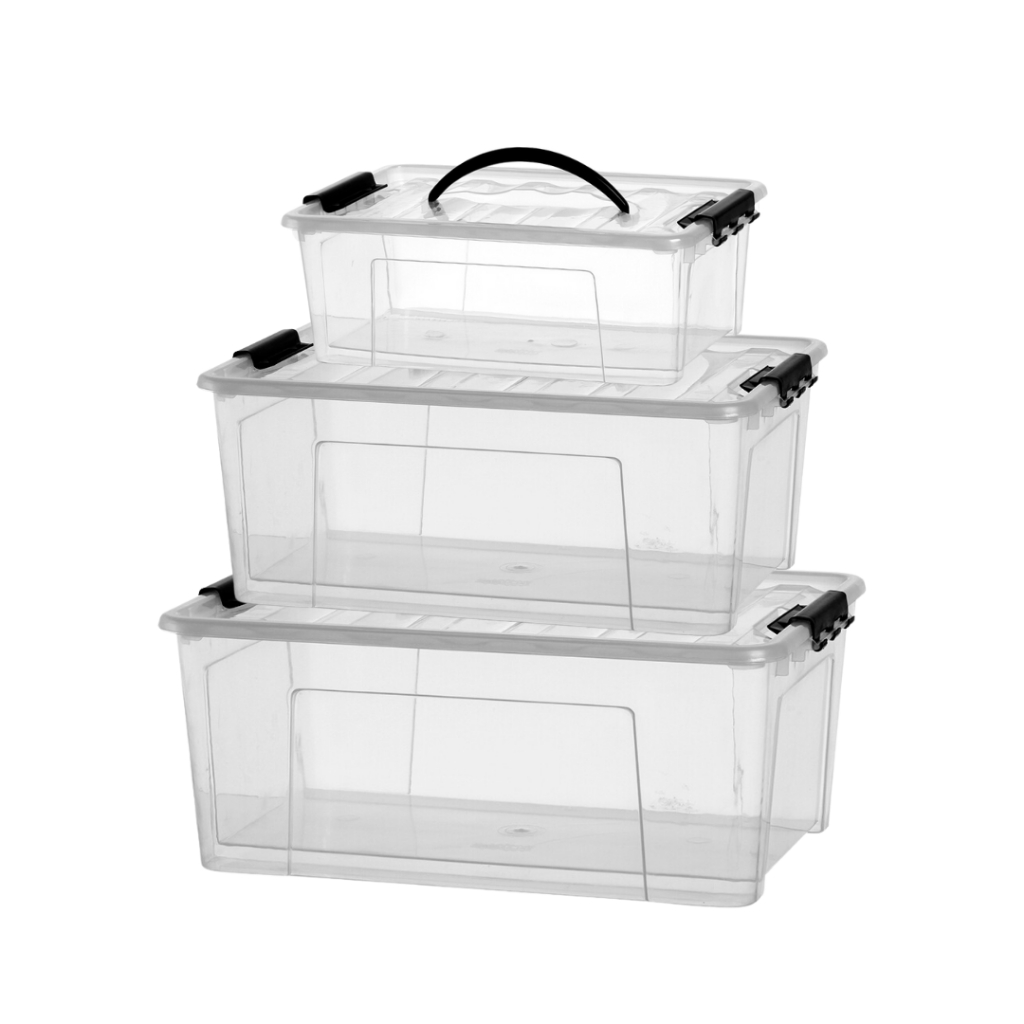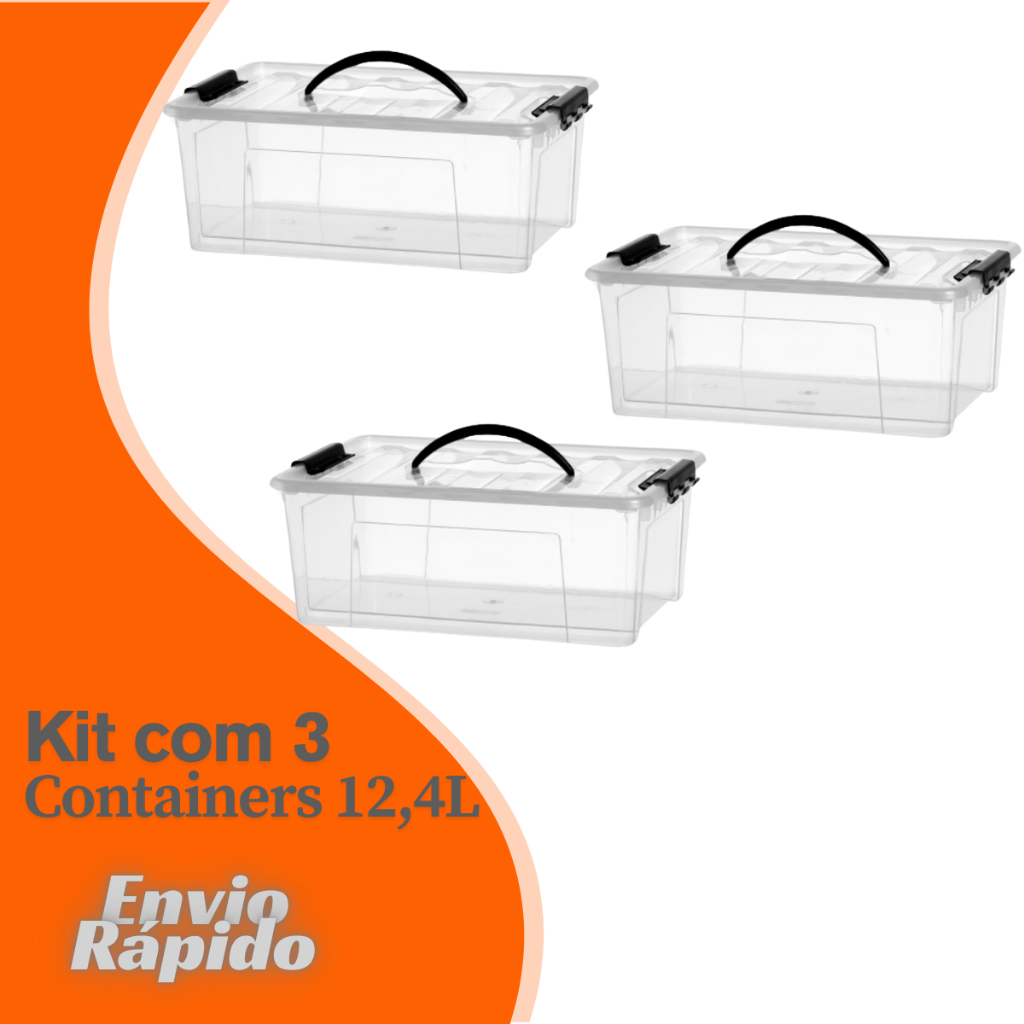 Conjunto 3 Container Tampa Com Trava 12,4 Litros Casa Escritorio Decoração Ferramentas Promoção