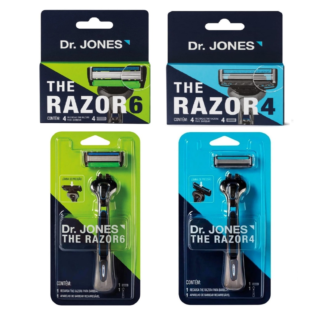 Dr Jones The Razor 6 e Razor 4 - Aparelho de Barbear e Laminas/Recargas