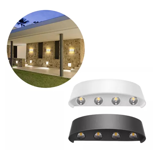 Arandela Led Parede Meia Lua 8w Aprova D'agua Branco Quente Com 8 Fachos Preto/Branco