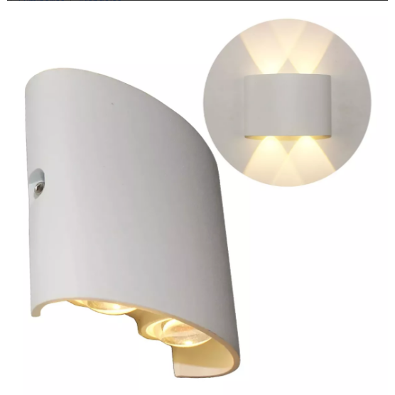 ARANDELA MEIA LUA PAREDE FRISADA BRANCA 4W 4 FACHOS, BIVOLT A PROVA D'ÁGUA BRANCO QUENTE