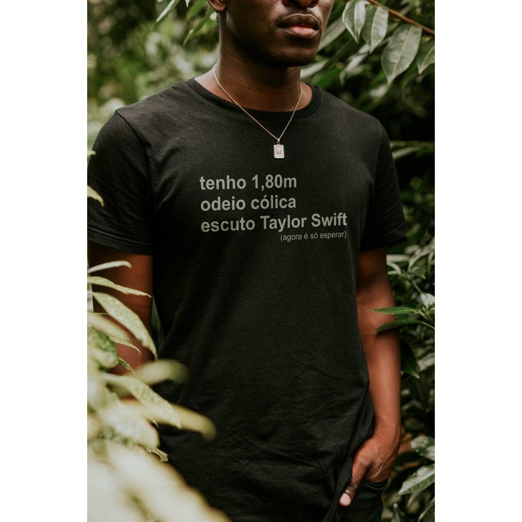 Camiseta Camisa Masculina Frases tenho 1,80 odeio cólica escuto Taylor Swift musica banda piadas - Liberty