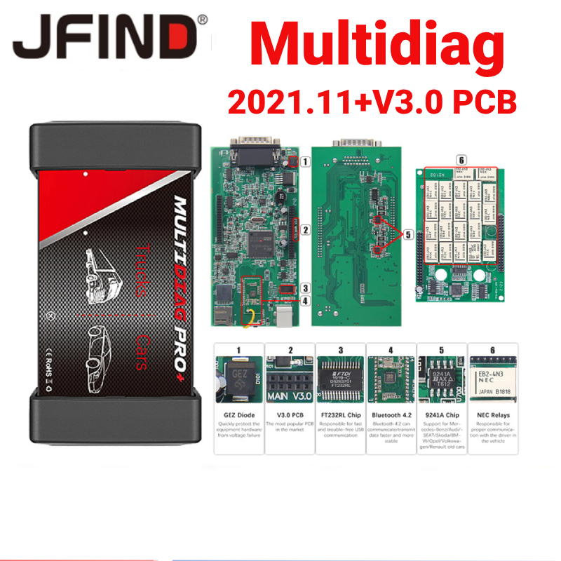 Multidiag Pro V3.0 2021.11 NEC Relés OBD2 Scanner Ferramentas Automotivas Para Caminhão delphi TCS CDP OBD 2 DS150E Interface De Diagnóstico Automotivo