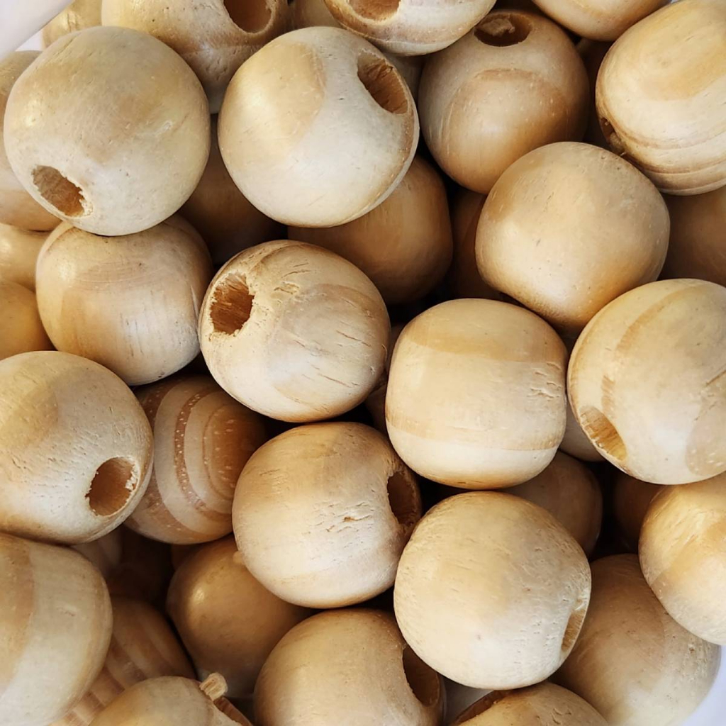 Conta Madeira Natural c/ furo 20mm Rajada- 100 Unidades