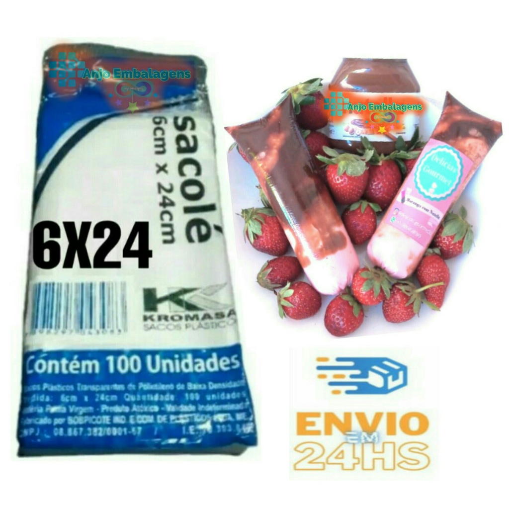 300 Saquinho 6X24 Saco Plástico Para Sacolé Juju Dindim Geladinho Gourmet PE Transparente