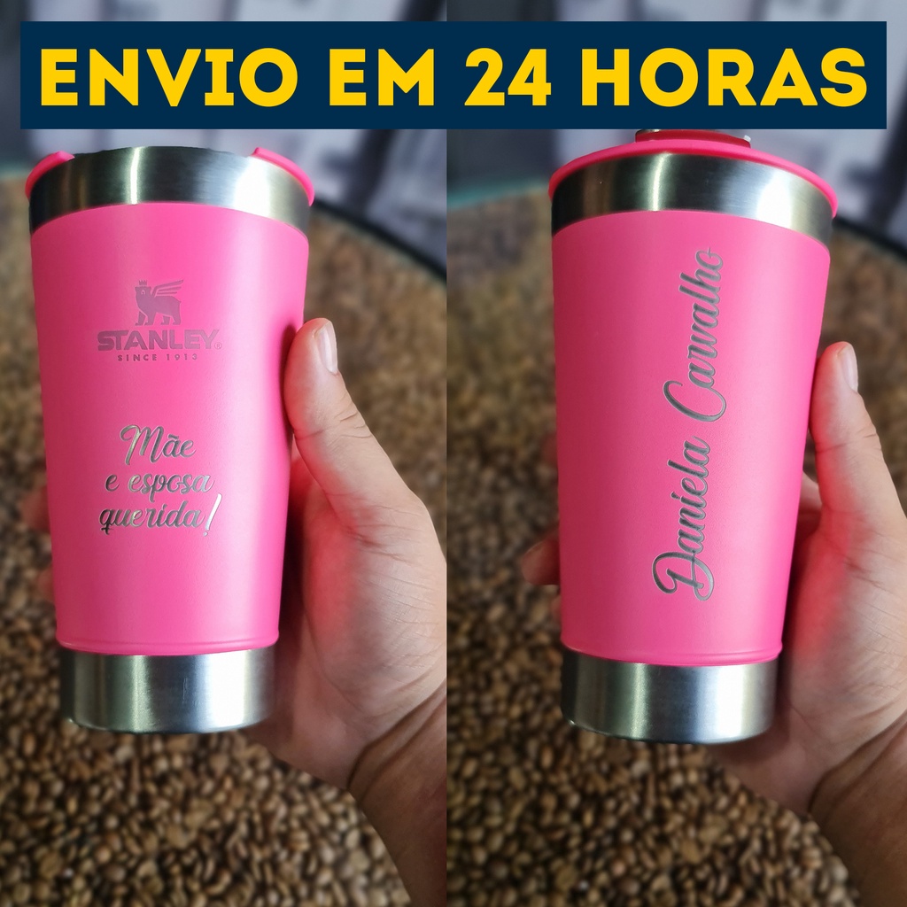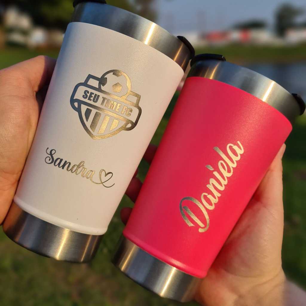 Copo Térmico personalizado com 2 Gravações com tampa e abridor 473ml, Copo tipo Stanley