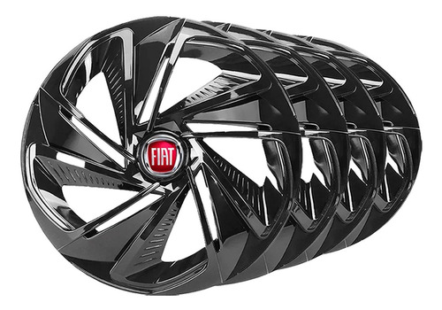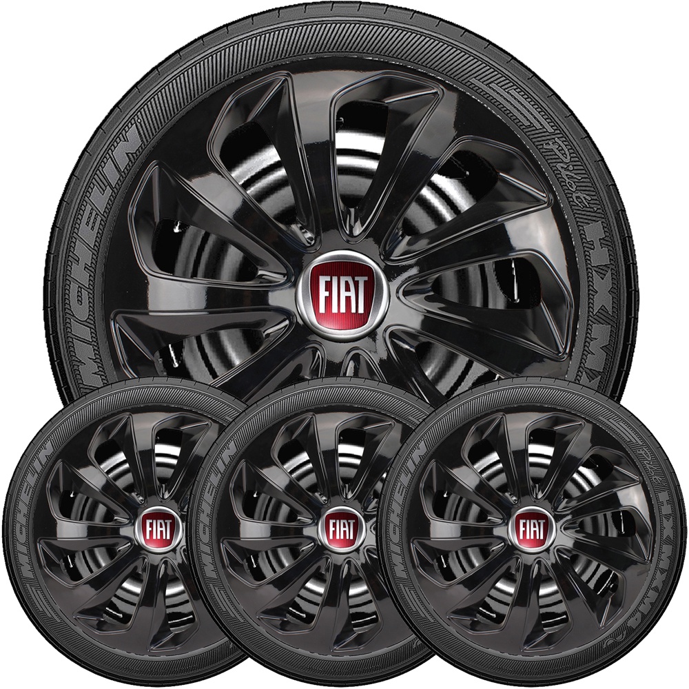 Jogo Calota Aro 14 Toda Linha Fiat Palio Siena Strada Argo Cronos Fiorino Mobi LC118 Preto Fosco