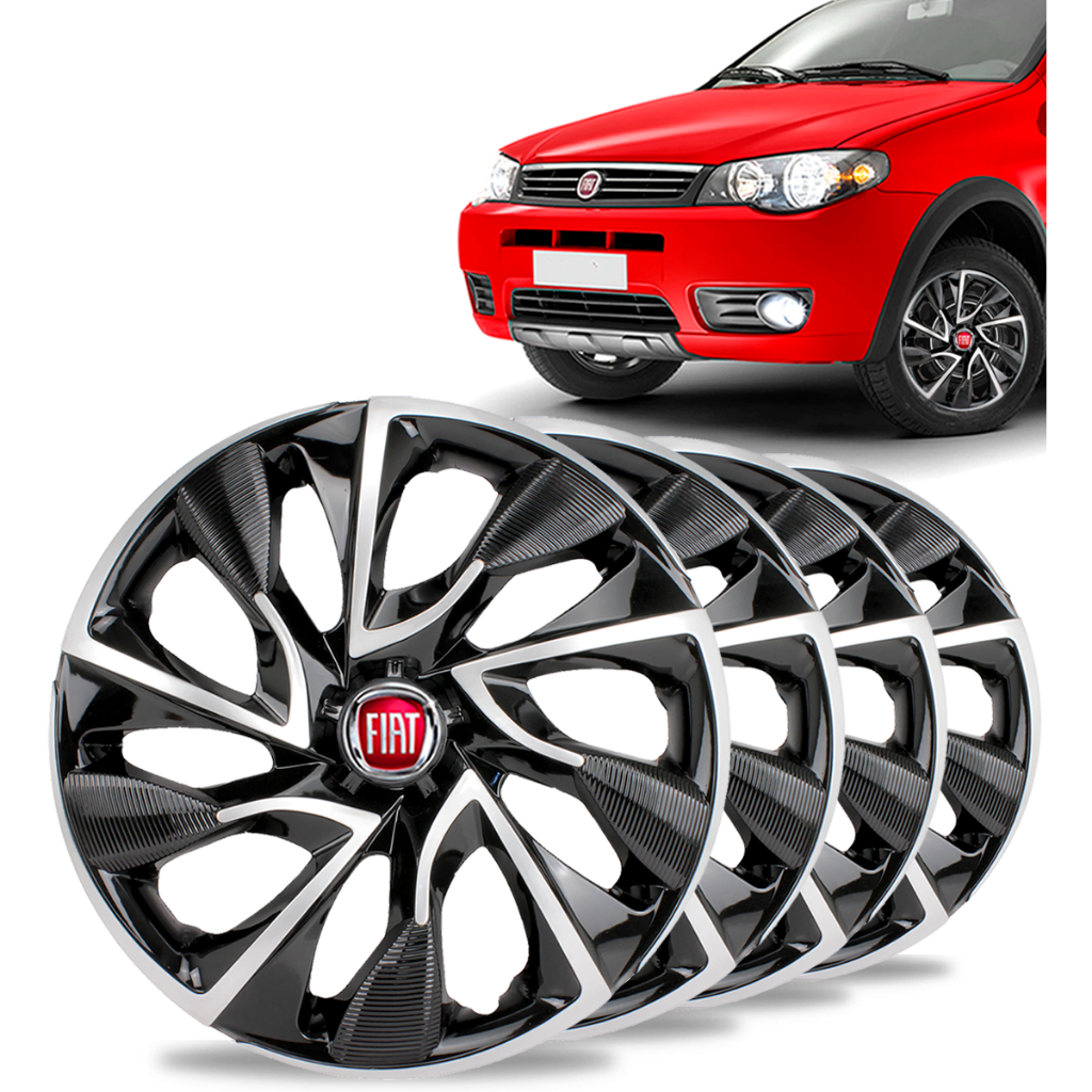 Jogo 4 Calotas Aro 14 Black Silver Fiat Palio Uno Siena Mobi
