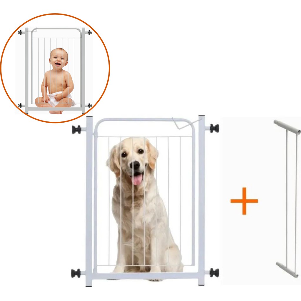 Portão Grade para Cachorro Pet Bebê porta de 68cm a 108cm - Cerquinha Portãozinho com Extensor Reforçado de Pressão p/ Parede Versátil e Portátil - Gate Preto ou Branco - Proteção e Segurança Kids Crianças e Cães