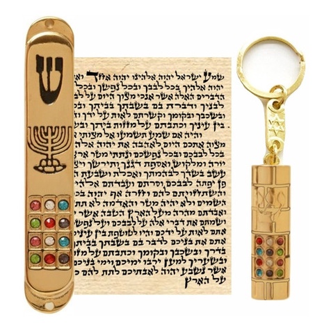 Mezuzá 12 Tribos De Israel + Chaveiro + Pergaminho Réplica