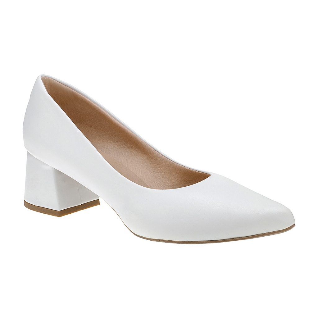 Sapato Scarpin feminino Bico Fino Salto Grosso Noiva Macio Napa Sintetica 1991