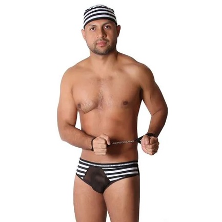 Fantasia Masculina Presidiário Lingerie Erótica Conjunto Prisioneiro