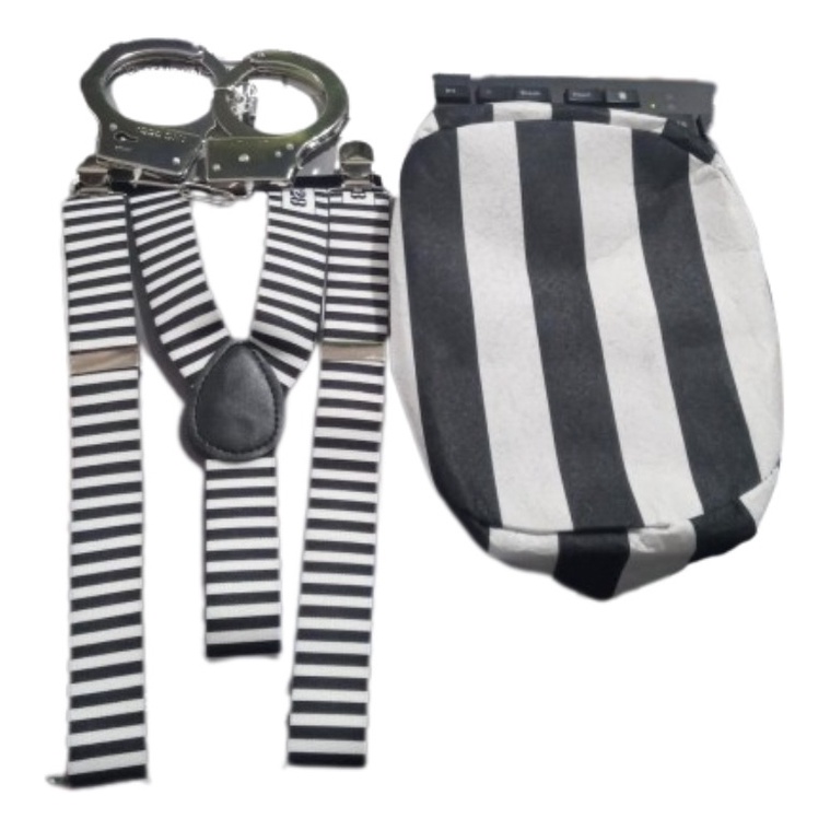 Kit Fantasia Presidiário Suspensório + Algema + Boina