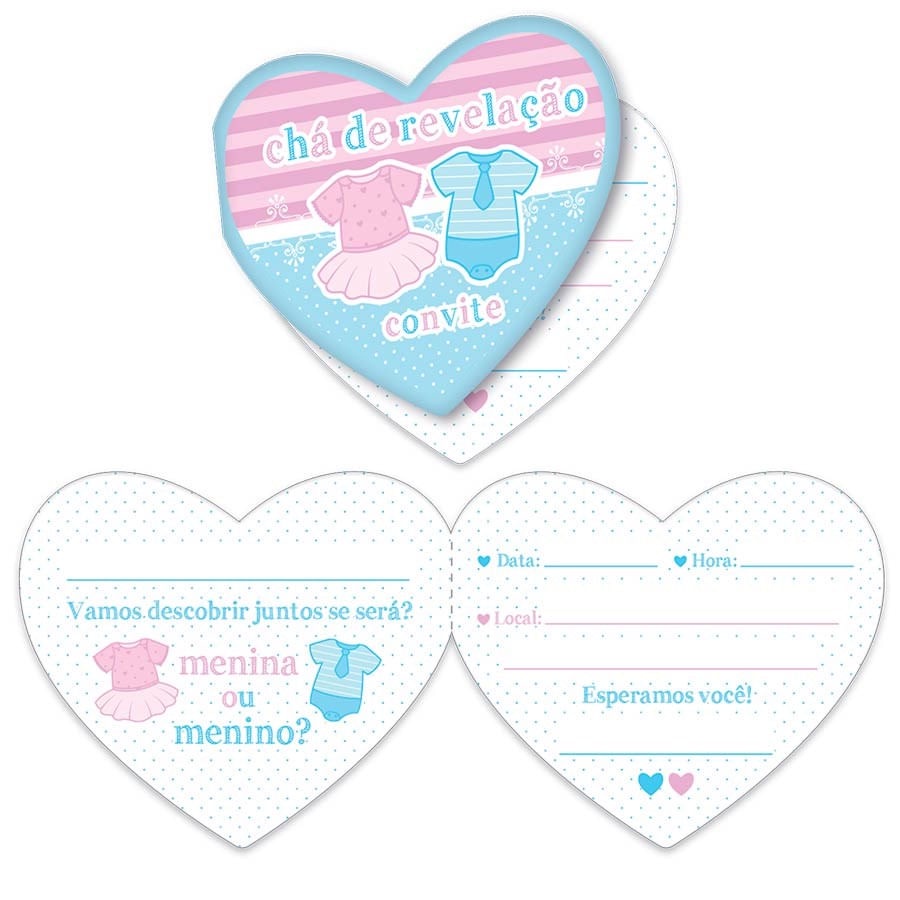 Convite de Aniversário 8 Unidades - Chá Revelação - Festcolor