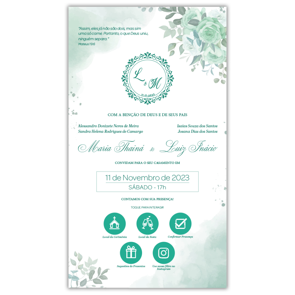Convite De Casamento Digital Flora Verde Com Botões Interativos