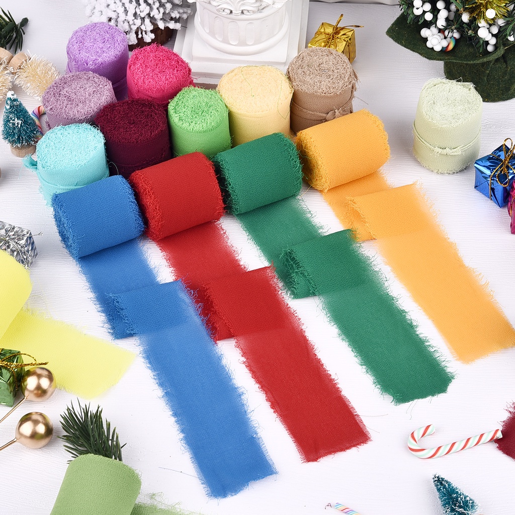 4CM * 5M Frayed Edged Cetim Chiffon Fita De Seda Para Convite De Casamento Envoltório Bouquets Festa De Aniversário Decorações Presentes