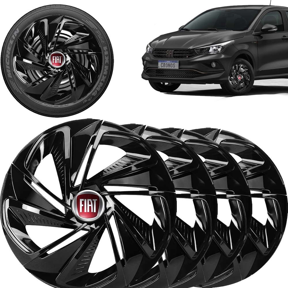 Jogo Kit 4 Calotas Ds4 Aro 13/14/15 Fiat Argo Siena Palio + Emblema Resinado