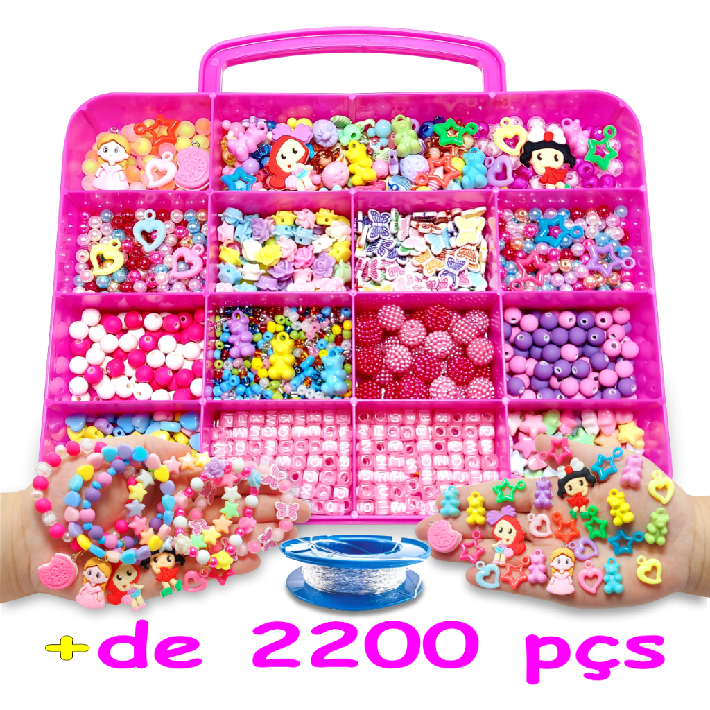 Kit Miçanga Infantil Para Pulseira Com + De 1200 Pçs Maleta Misanga Promoção Acessórios