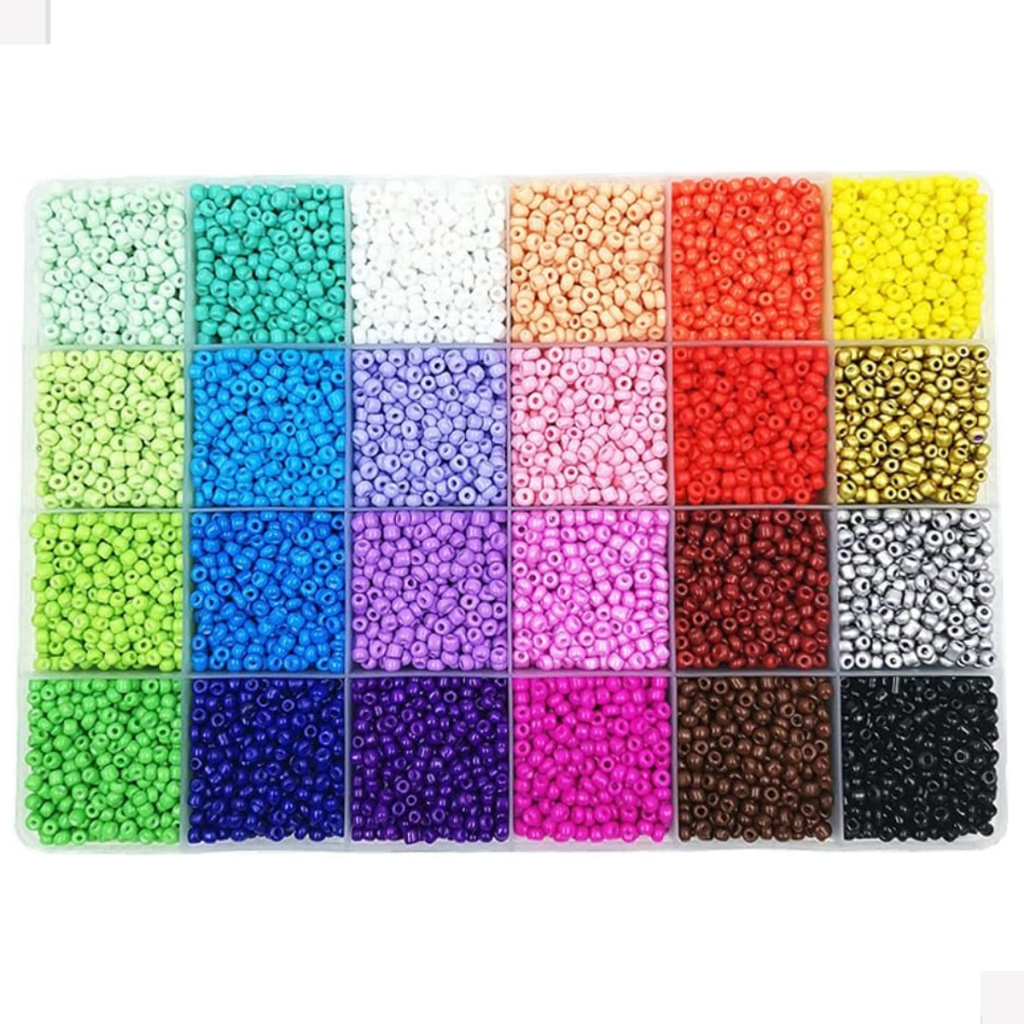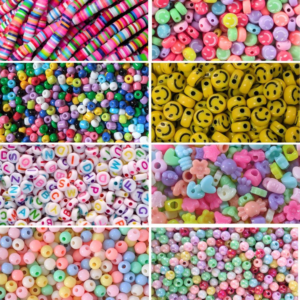 Kit Miçangas de vidro Completo colorido infantil entremeio pulseira colar aprox 1200 pçs + Silicone