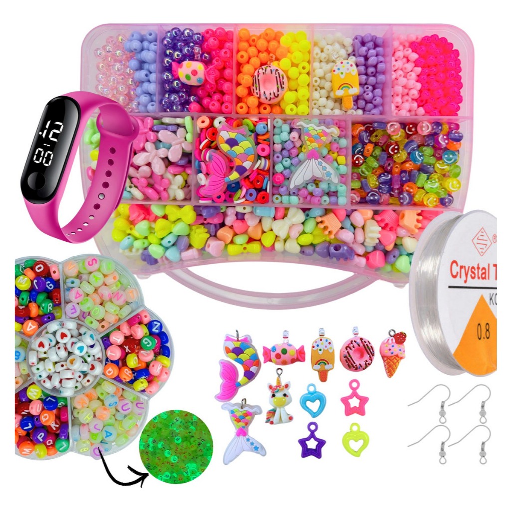 Kit 1200 Pçs Montar Pulseira Infantil Miçangas Sortidas de Artesanato