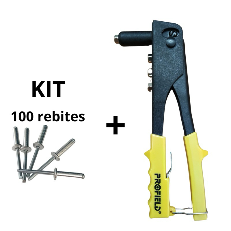 Kit 100 Rebites + Rebitadeira, Alicate Rebitador Manual 10 polegadas Profield - 4 Furos (2.2; 2.4; 3.2; 4mm) + Chave / 50 rebites / 100 rebites
