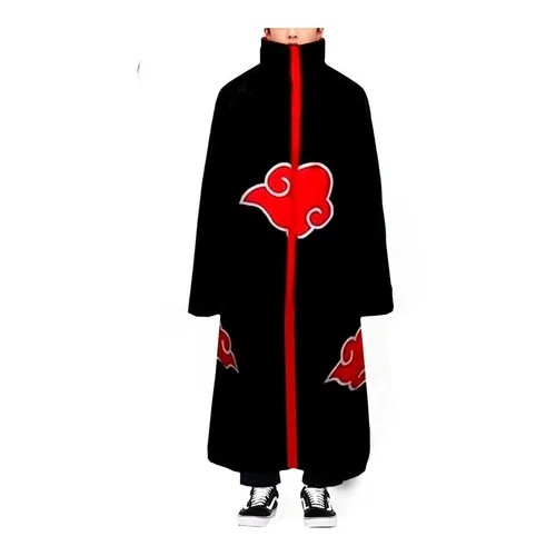 Capa Manto Akatsuki Naruto Cosplay Fantasia Itachi - Ziper