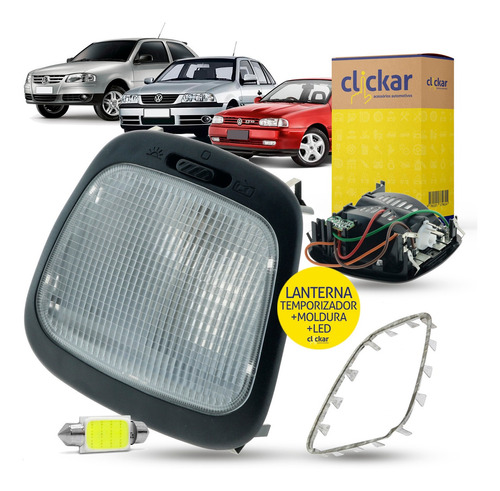Lanterna Luz De Teto Preta Com Temporizador + Moldura e LED Volkswagen Gol Saveiro Parati G2 G3 G4 Kombi 1996 1997 1998 1999 2000 2001 2002 2003 2004 2005 2006 2007 2008 2009 2010 2011 2012 2013 2014