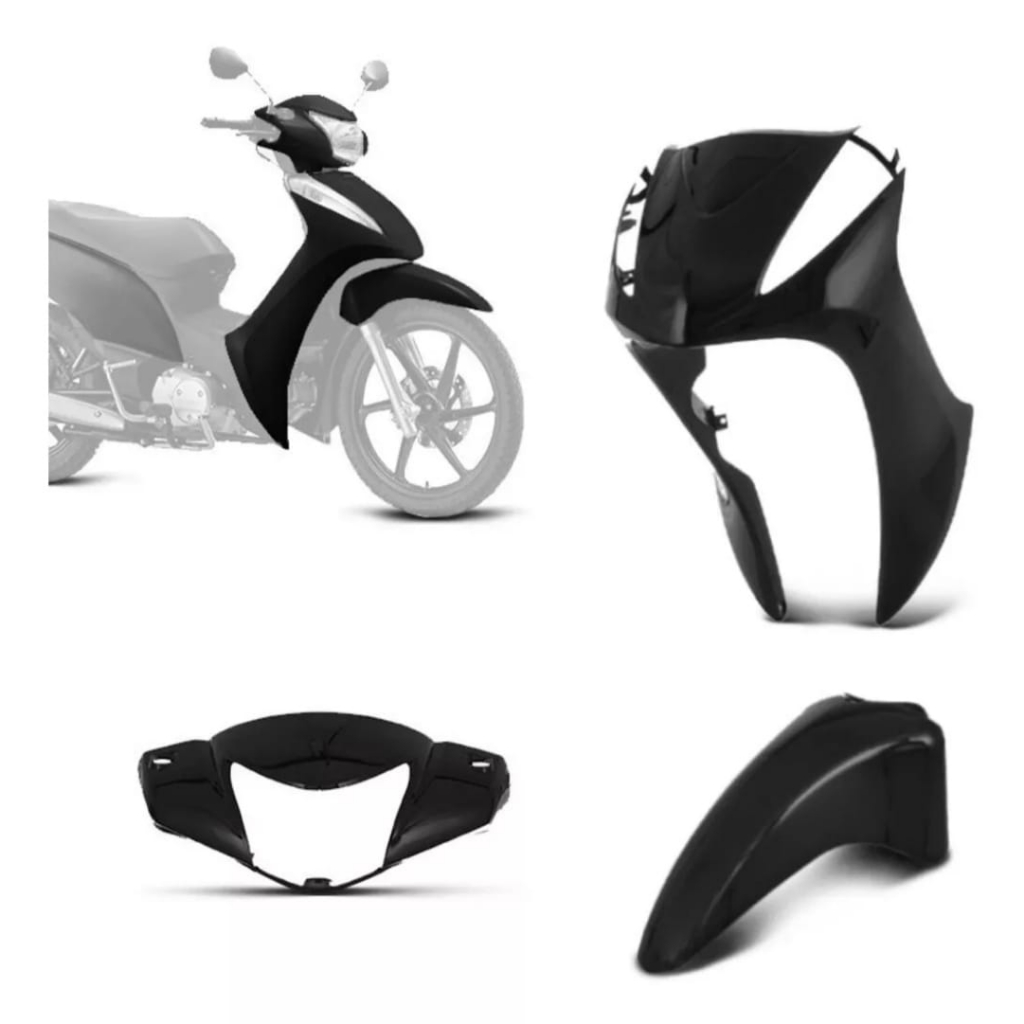 Kit Carenagem biz 110 125 ks Es Biz 125 2011 a 2014 Biz110 2016 Frontal+Carenanagem do Farol+Para Lama Dianteiro Preto Brilhante