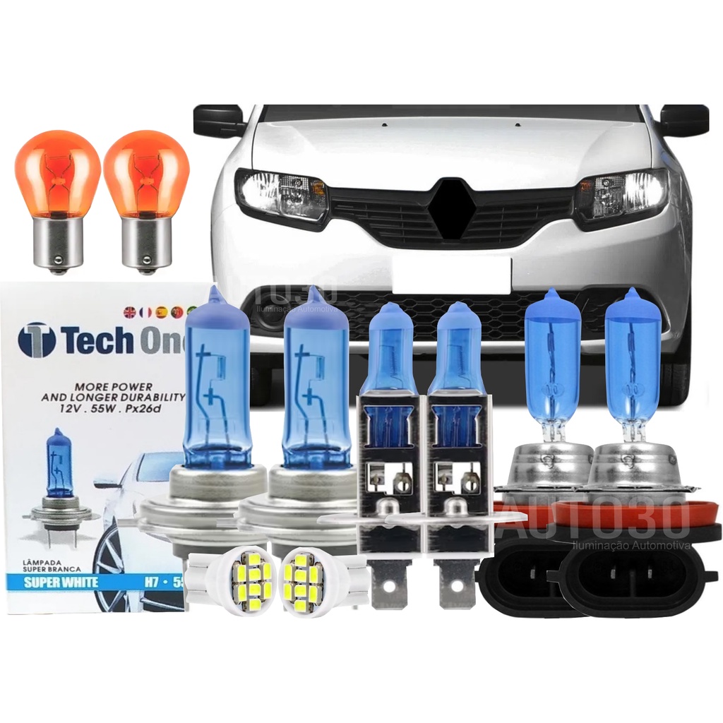 Kit Lâmpadas Super Branca 8500k Sandero Logan Duster 2015 À 2022