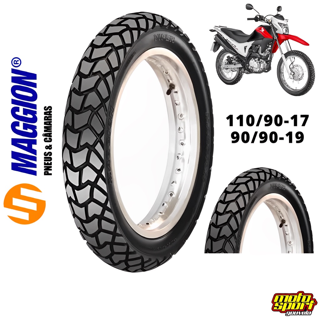 Pneu Traseiro Maggion 110/90-17 Viper Moto Nxr Bros 150/160 Crosser Xre 190 Dianteiro 90/90-19