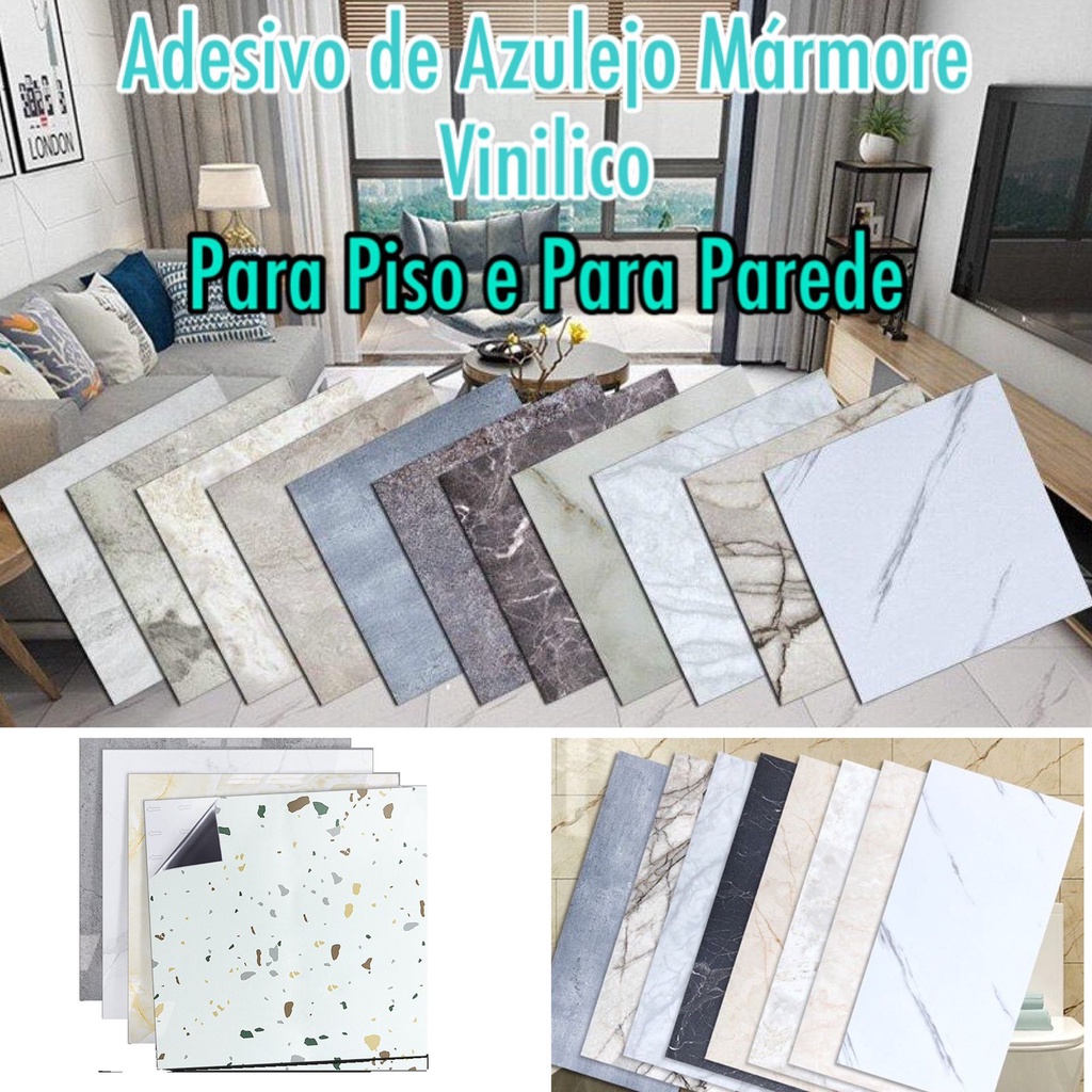 Piso Vinilico Adesivo De Azulejo Mármore Moderno Com Cola Antiderrapante Lavável