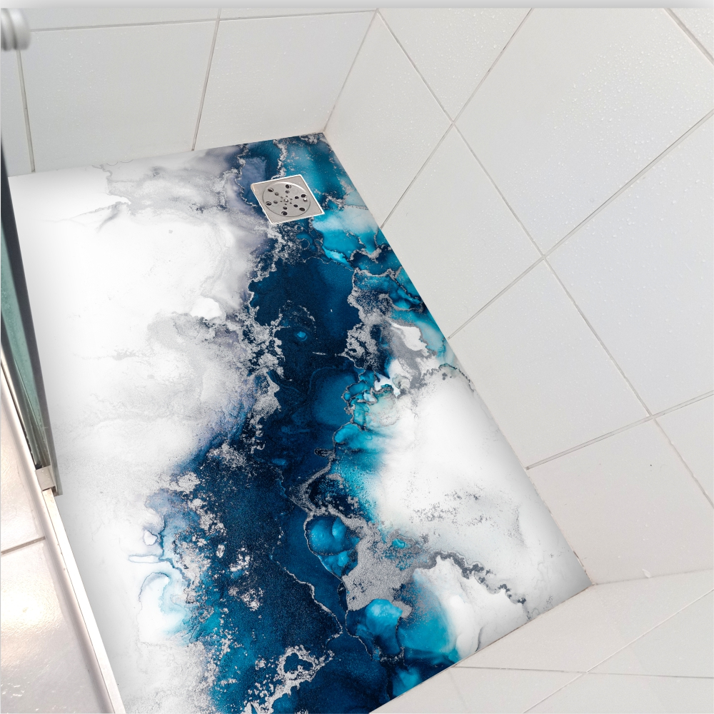 Vinil Antiderrapante Para Piso Parede Box Banheiro Mármore Azul e Branco 1,20x0,97
