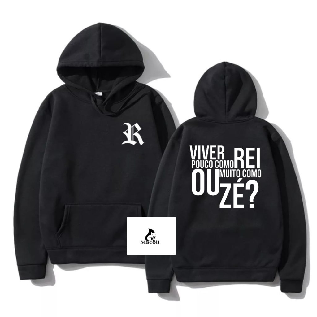 Moletom Canguru Viver pouco como Rei ou Muito como Zé Racionais Mc's Música Blusa Capuz e Bolso Unissex