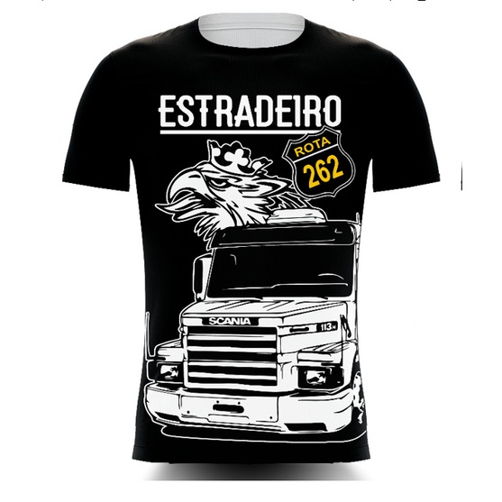 Camiseta Caminhão Estradeiro Rota 262 Caminhoneiro Camisa Preta