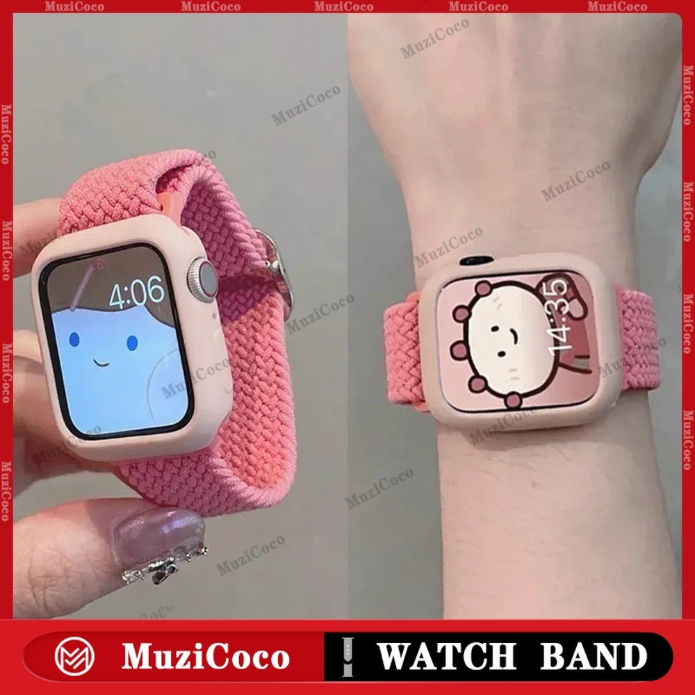 Elasticidade Faixa + Caixa Para Smartwatch Relógio Inteligente 49mm 45mm 44mm 41mm 40 38 42mm Rosa iWatch Série 9 8 7 6 SE 5 4 3